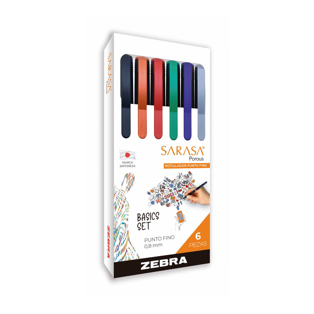 Rotuladores Sarasa Porous Estuche 12 Piezas Zebra.